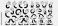 Collection of forty seven illustrations of retro four-fingered cartoon hands.