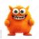 Dla Dzieci - Happy orange furry monster cartoon smiles joyfully on a plain white backdrop, Happy Orange Furry... #1543060663