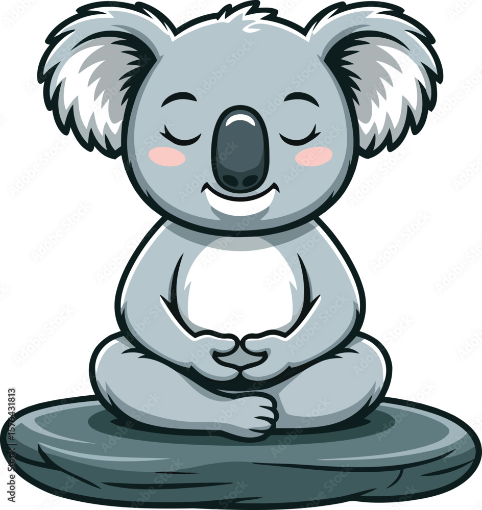 Dla Dzieci - Peaceful koala meditating on a rock animal cartoon #1576431813