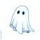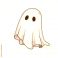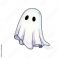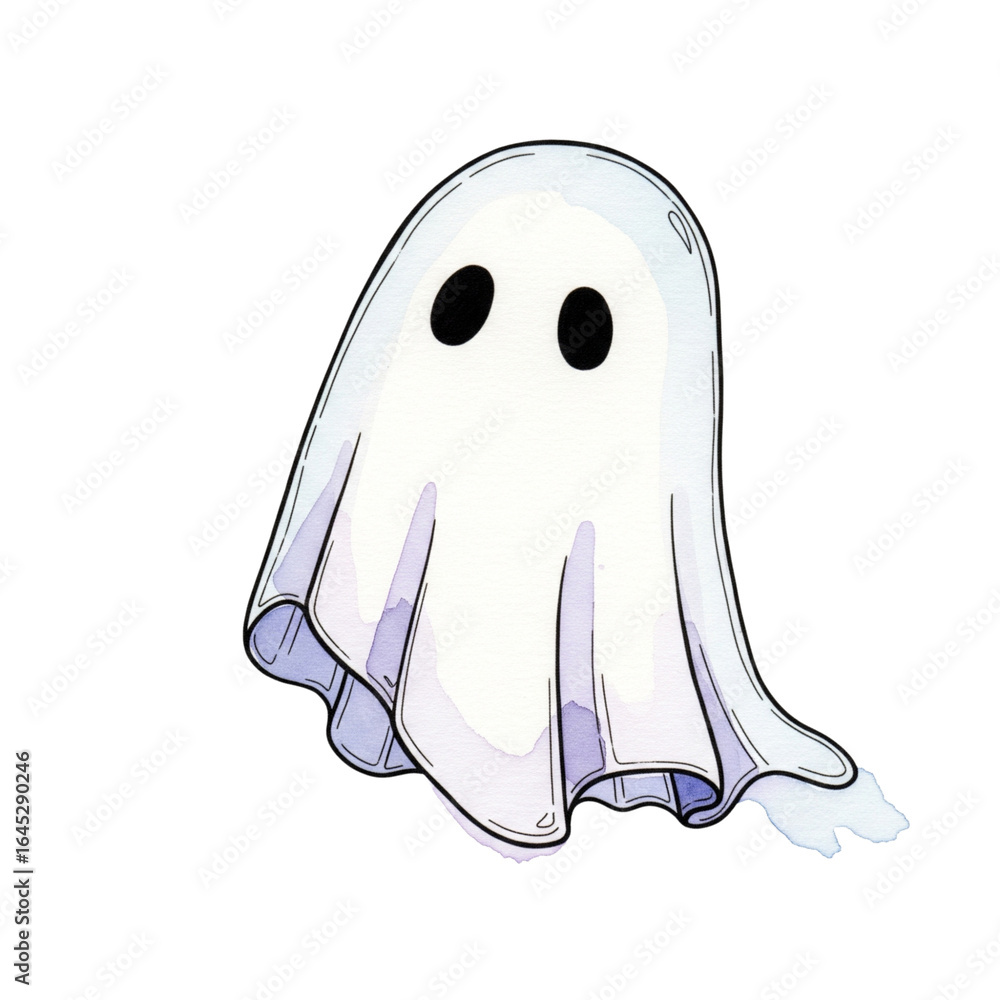 • A cute cartoon ghost with a white sheet and black eyes.