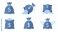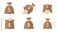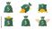 • A collection of cartoon green money bags with dollar symbols, showing concepts like wealth, profit, loss, and savings