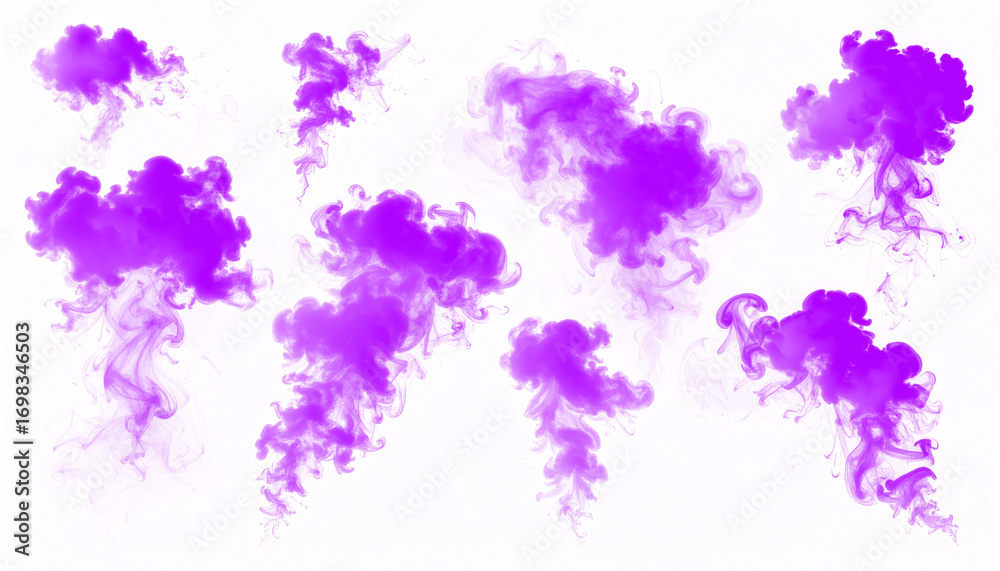 • PNG of purple smoke forming a cartoon cloud with rounded puffs, ideal for digital designs, creative projects, and backgrounds requiring fun, whimsical, and transparent smoke effects.