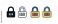 • Vector icon security lock combination same pose same proportions four styles black solid glyph outline minimal flat multicolor filled cartoon flat shaded.