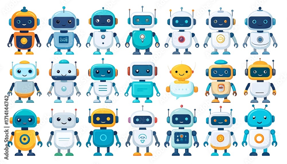 Dla Dzieci - Collection of cartoon robots in various colors and expressions #1714144742