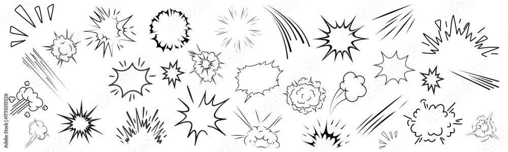 Dla Dzieci - Line speed cartoon effect, boom explosive motion line element set. Comic boom burst, explosive... #1750315526