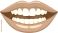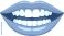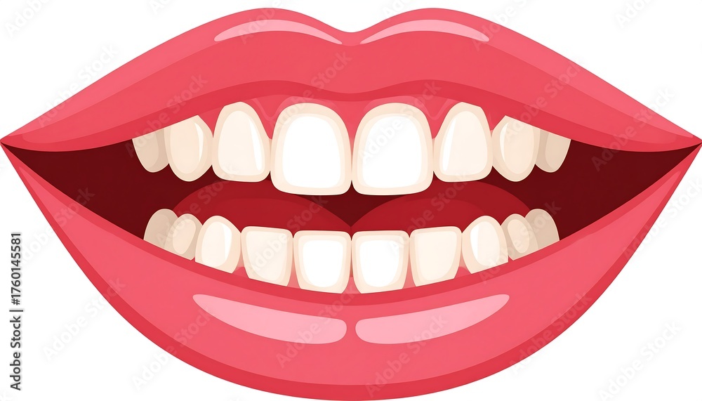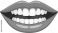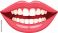 • A cartoon illustration of wide open, smiling lips revealing white teeth