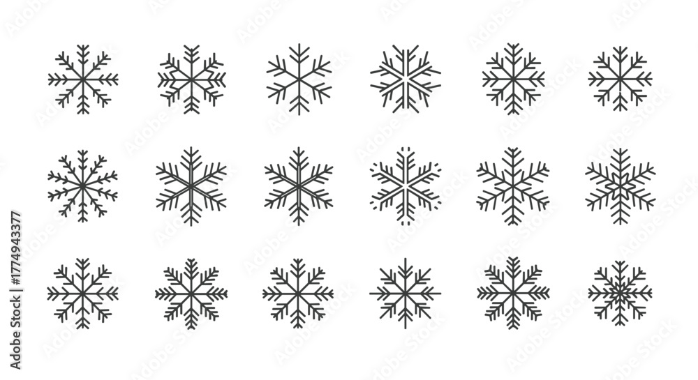 Dla Dzieci - Collection of 15 thin line snowflake icons, perfect for winter-themed designs, web elements, book... #1774943377