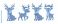 • Set of cute cartoon reindeer wearing scarves, bows, and Santa hats.
