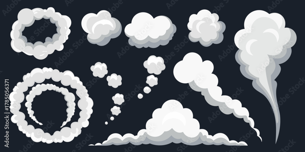• Collection of stylized cartoon smoke and cloud effects for animation and design