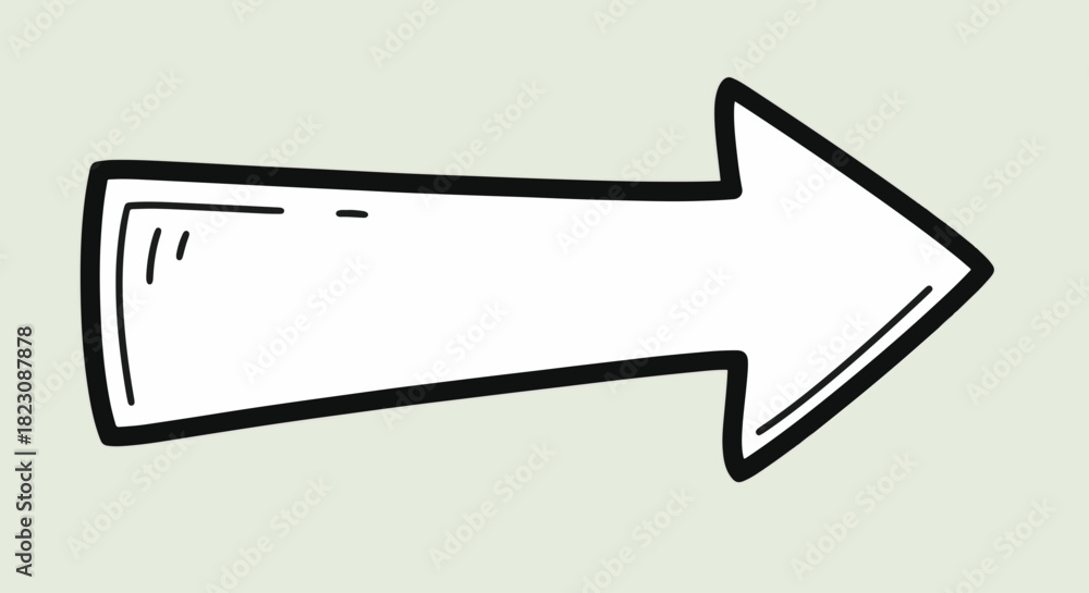 • A bold, outlined, white arrow points right. Simple, cartoonish style. Isolated on a soft white background. Directional.