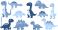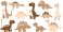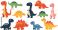 • Big set of cute cartoon dinosaurs vector illustration collection of eleven colorful prehistoric animals including t-rex and triceratops isolated for kids.