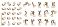 • Set of cartoon character hands and legs in a retro 1930s animation style showing various gestures and poses like walking, running, and pointing for a comic mascot constructor kit