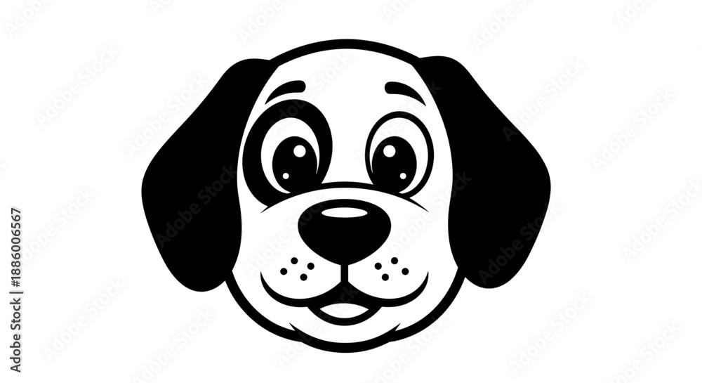 • Cute cartoon dog face with big eyes and floppy ears.