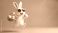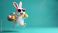 Dla Dzieci - Funny white bunny with pink sunglasses jumps holding basket with colorful eggs. Easter... #1903363601
