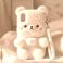 • Adorable fluffy white teddy bear phone case featuring a charming cartoon face and attached wrist strap accessory rests softly upon plush fabric surfaces