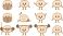 • Cute brain cartoon character set showing reading books, sleeping, waving hands, happy and sad emotions, and weightlifting exercise, funny mascot isolated on white.
