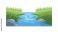 • A cartoon illustration of a small stream flowing through a green landscape with rocks and grass on transparent background silhouette