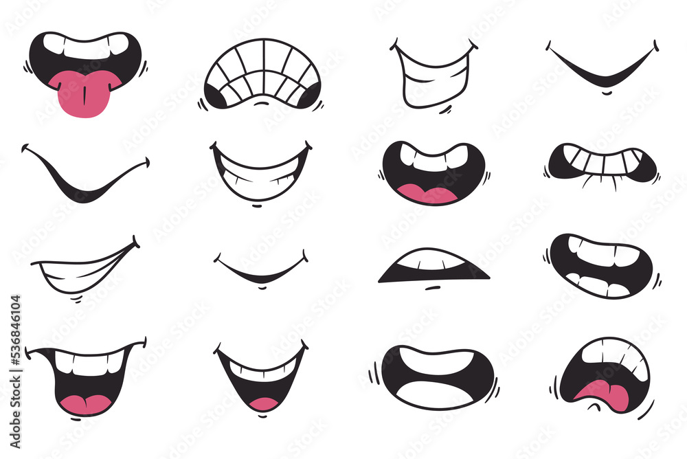 • Mouth smile cute cartoon doodle face expression isolated set. Vector graphic design element illustration
