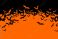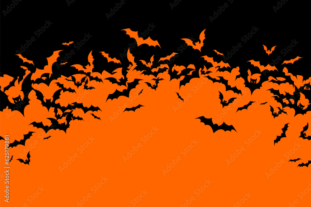 • Halloween banner with black bats on the orange background. Illustration with text.