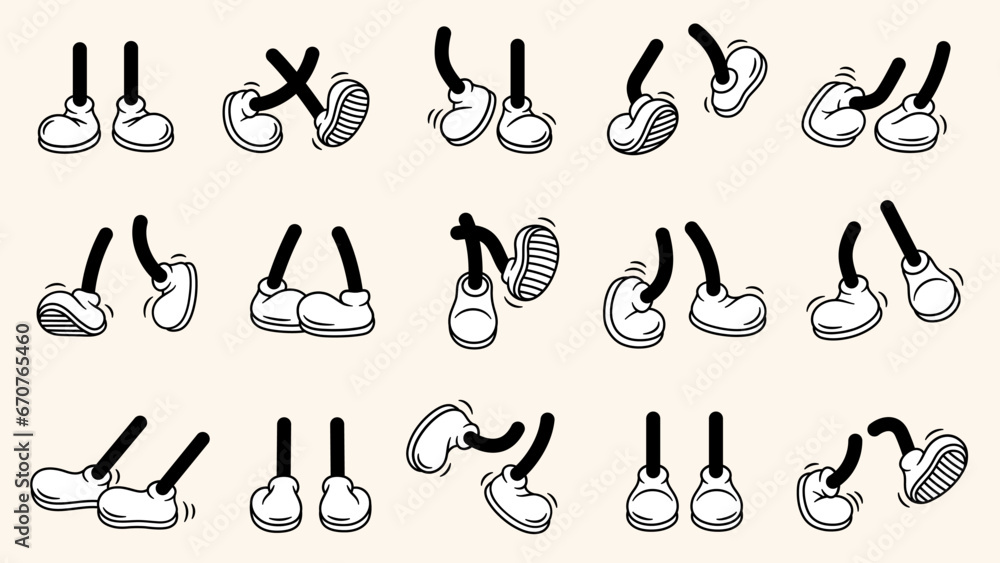 Dla Dzieci - Vintage retro feet and boot vector collection. Comic retro feet in different poses, leg standing,... #670765460