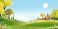 • Spring field landscape with cloud and sky blue over forest trres,Vector cartoon scene rural nature park in sunny day summer,Beautiful farmland in countryside for Easter banner background