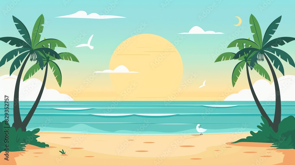 Dla Dzieci - cartoon vector image of a beautiful beach view, background for a beach holiday web banner #829352757