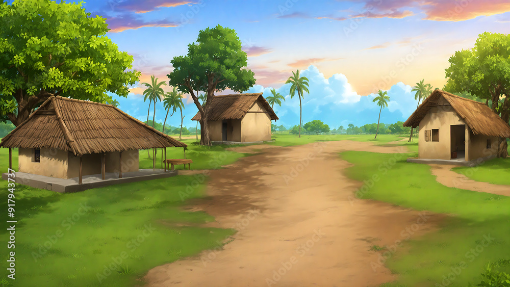 Dla Dzieci - Beautiful rural village house, Indian village background for cartoon #917943737