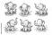 • Cute cartoon elephants playing in water and grass, showcasing playful and joyful moments. Perfect for children's themes and designs.