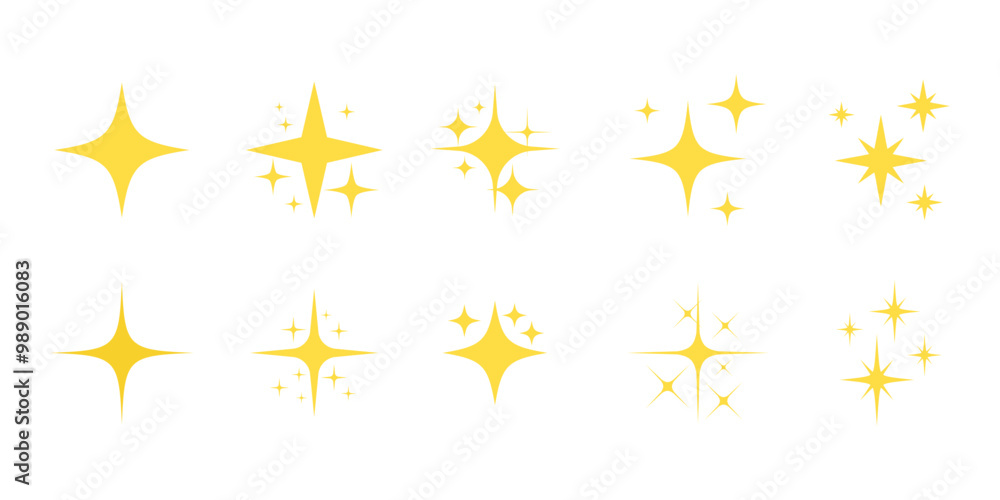 Dla Dzieci - Sparkling star icons set. Set of yellow sparkle star icons. Rating star. Bright vector stars.... #989016083