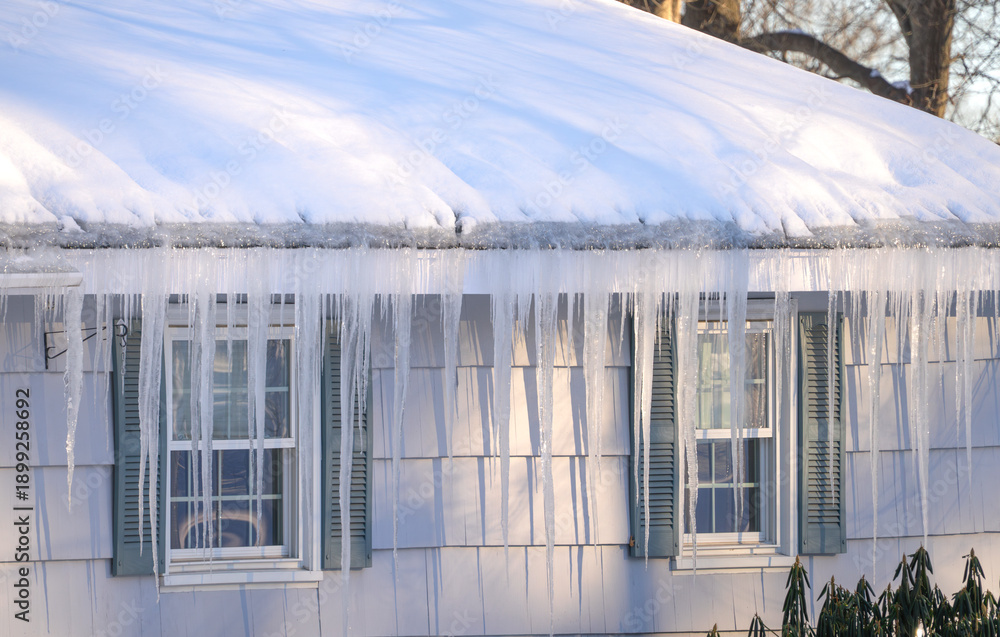 Miasto - winter house with icicle and snow on the roof #1899258692