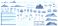 • Beach landscape constructor. Sandy beaches, tropical palms, mountains and hills. Ocean horizon, clouds and green trees cartoon vector illustration set. Nature beach landscape constructor