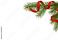 • Evergreen twigs of Christmas tree with red ribbon in a holiday corner arrangement isolated on white or transparent background