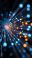• Abstract light streaks with glowing particles representing high speed data flow and technology