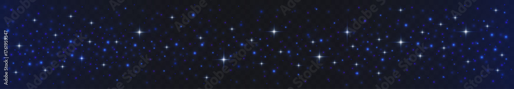 • Galaxy background with blue glitter particles. Vector realistic illustration of dark space with shining dots and shimmering stars, black night sky panorama, cosmic stardust lights design, magic effect