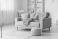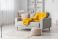 Przestrzeń - Modern interior of living room with stylish grey sofa, pouf and yellow knitted plaid #1825404785