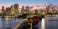 • Saint Petersburg Florida skyline from above at Tampa Bay with St. Pete Pier panorama at night in downtown St Petersburg, United States