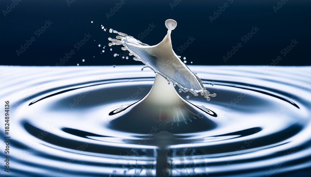 • liquid impact macro white milk droplet crown splash pristine surface elegant formation circular ripples expanding outward professional photography