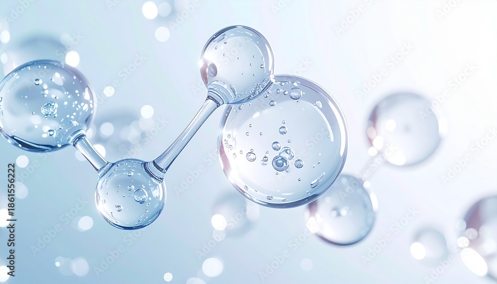 • 美容液分子と水滴の透明表現 高保湿成分と美容科学 ジェネレーティブAI