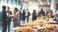 • corporate networking event with buffet spread business professionals mingle interact over food drinks in modern office setting blurred background emphasizes social gathering teamwork company