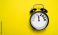 • Alarm clock showing 2025 turning into 2026 which symbolizing New Year countdown of time transition, future planning, celebration and year-end change on yellow background and minimal concept.
