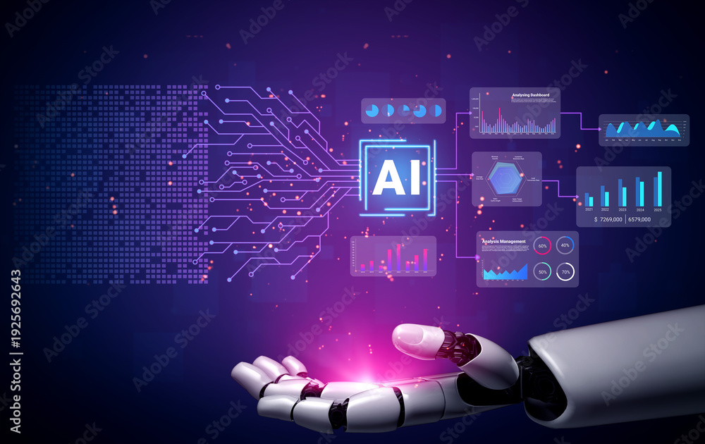 Artificial intelligence supports data analysis and dashboard visualization to boost business performance and strategic insights Parse od 0,00 zł Dopasuj i kup Obraz