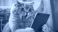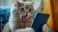 • Surprised cat staring at smartphone with wide eyes and open mouth