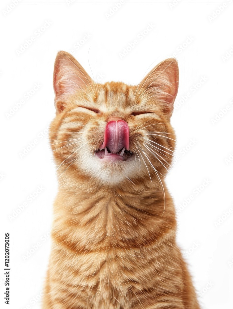 Koty - Ginger kitty enjoys licking a screen in a bright, isolated setting #1202073005