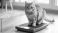 Koty - Ginger cat stands on a digital scale, looking directly at the viewer with a curious expression. #1575044859