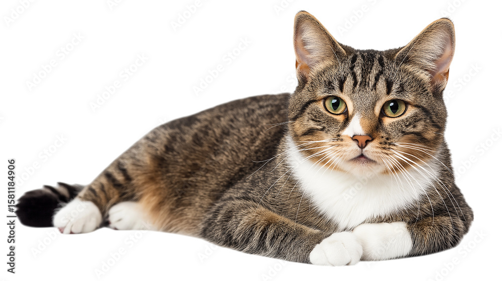 Koty - Tabby Cat Lying Down Brown Beige Fur isolated on a transparent background #1581184906