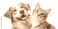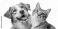 • Portrait of a happy dog and cat looking at the camera together, isolated on a transparent background. The image captures the beautiful friendship and harmony between the pets, showing their joyful exp