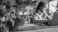 Koty - Cozy home office with woman working on laptop and relaxed tabby cat on wooden desk among houseplants #1844928414