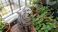 • A gray tabby cat enjoys mint leaves on a wooden balcony surrounded by potted plants