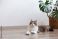Koty - Portrait of a siberian cat with green eyes lying on the floor at home. Fluffy purebred... #501334469