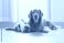 Koty - Golden retriever and british shorthair lying on the floor #521334487